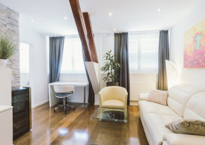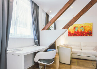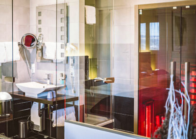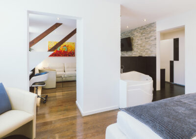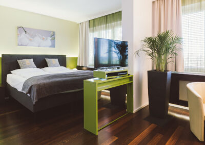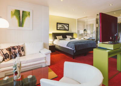 Genießen Sie die von Kapo „Neue Wiener Werkstätten“ konzipiert und eingerichteten Hotelzimmer. Modern, geräumig und behaglich präsentieren sich Junior Suiten mit großem Whirlpool im Badezimmer, Comfort – Dusche, TV im Bad, Haarfön, Flatscreen-TV schwenkbar 90cm im Wohn-Schlafbereich, SAT TV, Radio, Massagesessel, Mini Bar, Espresso Maschine, Safe, W-LAN Internetzugang, Schreibtisch, ausziehbare Ledercouch, Leselampe uvm….