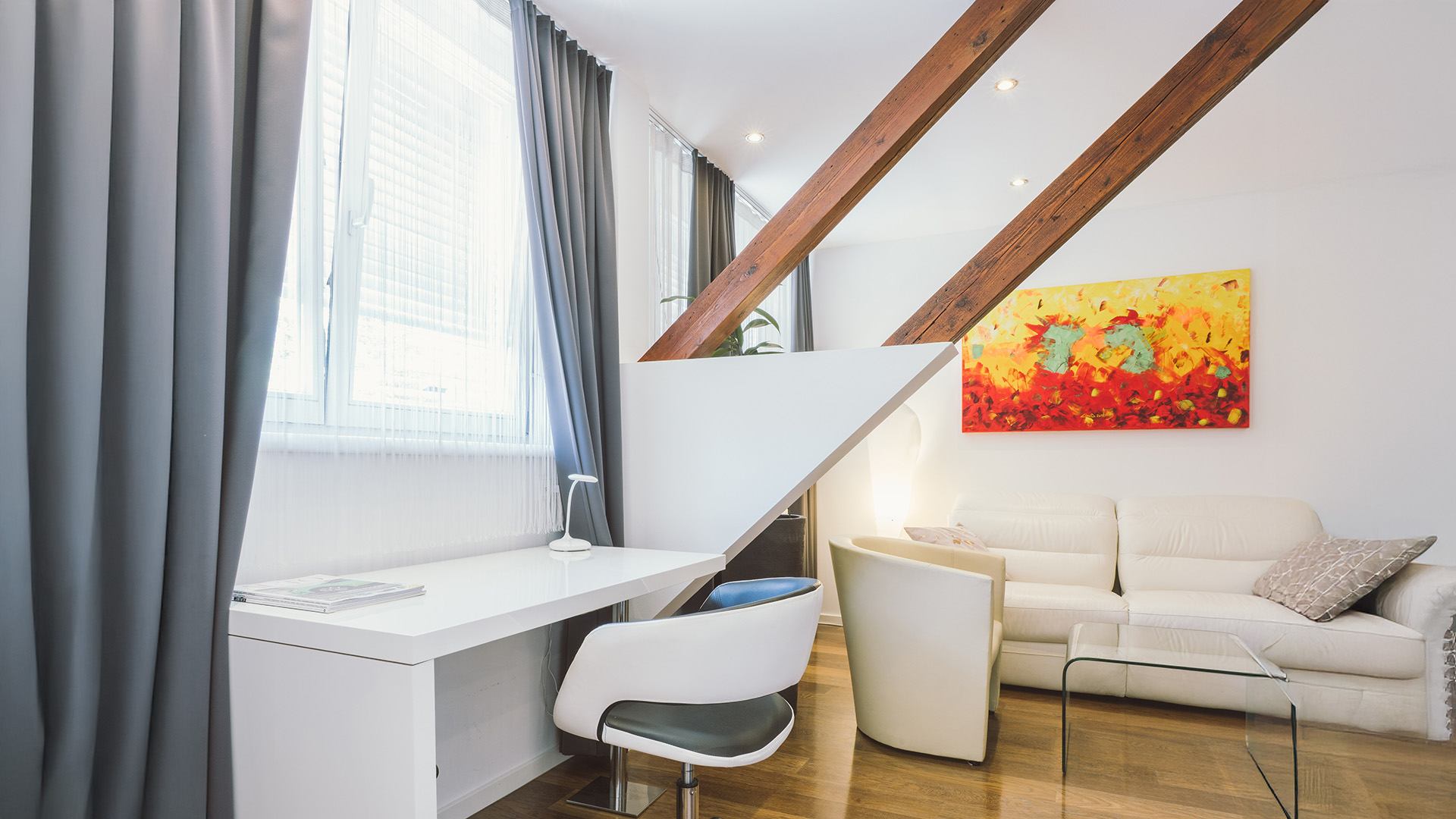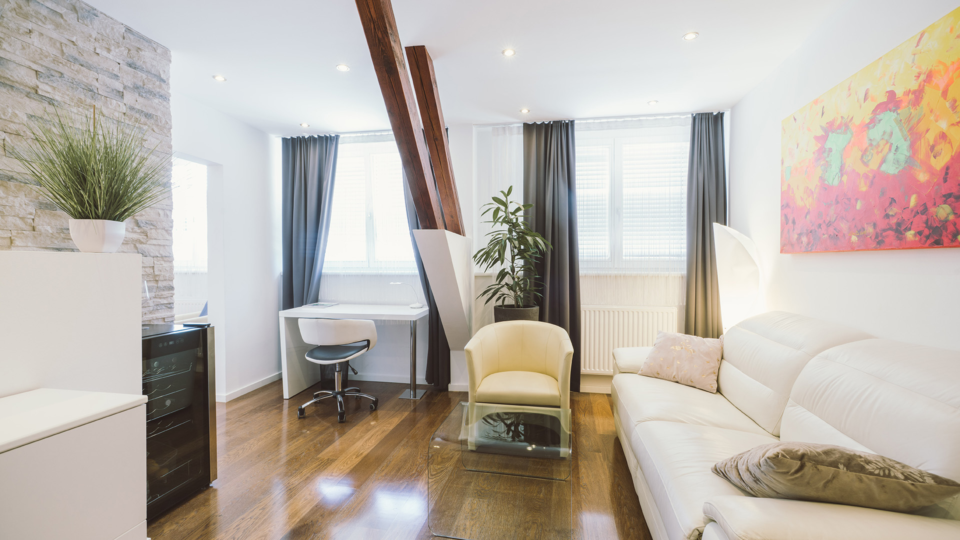 Genießen Sie die von Kapo „Neue Wiener Werkstätten“ konzipiert und eingerichteten Hotelzimmer. Modern, geräumig und behaglich präsentieren sich Junior Suiten mit großem Whirlpool im Badezimmer, Comfort – Dusche, TV im Bad, Haarfön, Flatscreen-TV schwenkbar 90cm im Wohn-Schlafbereich, SAT TV, Radio, Massagesessel, Mini Bar, Espresso Maschine, Safe, W-LAN Internetzugang, Schreibtisch, ausziehbare Ledercouch, Leselampe uvm….